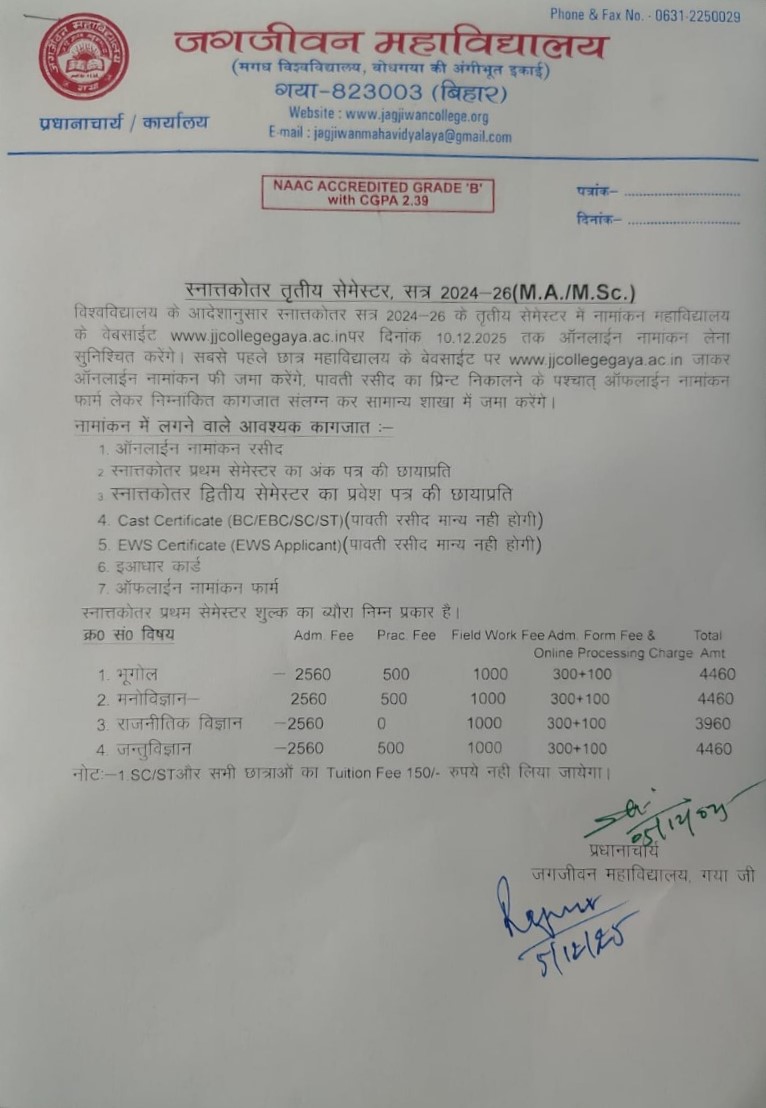 NOTICE OF PG 3RD SEMESTER ADMISSION 2024–2026